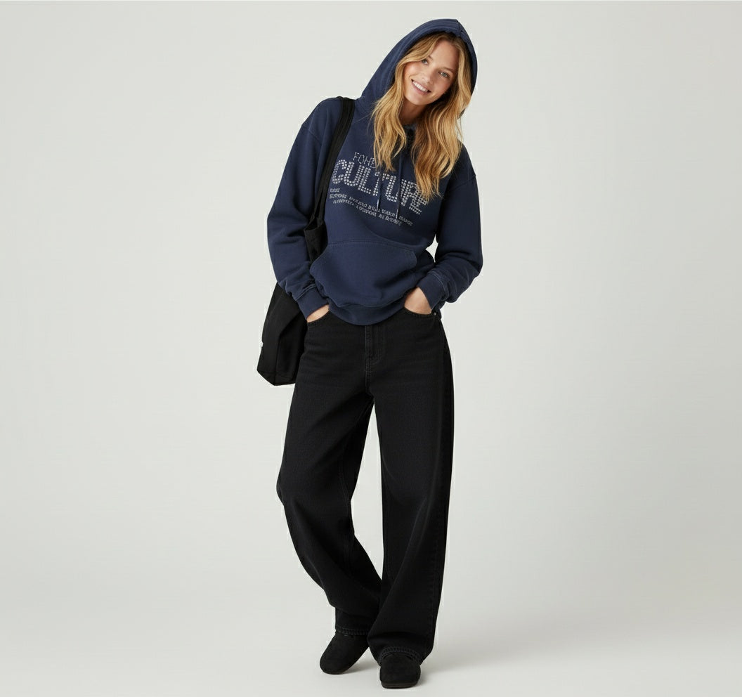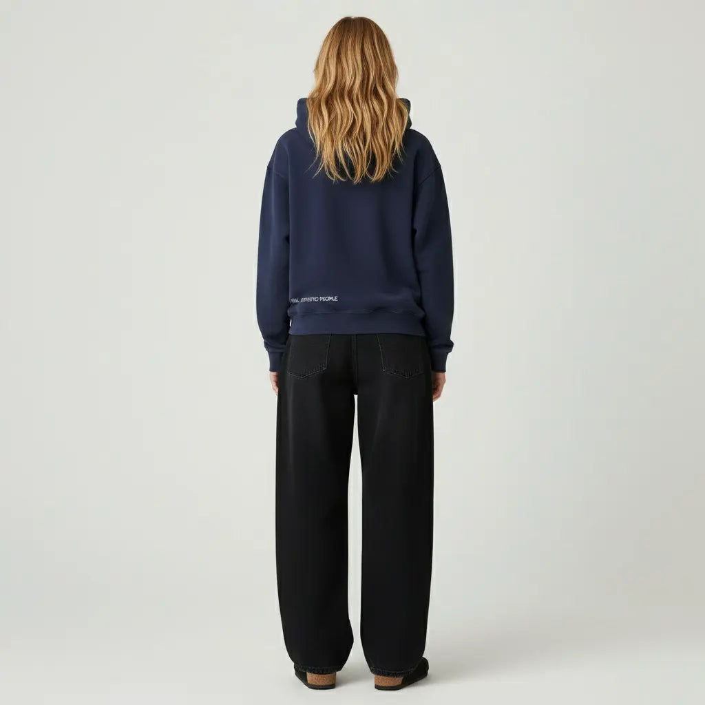 sweat à capuche, coupe "semi-large", couleur bleu,